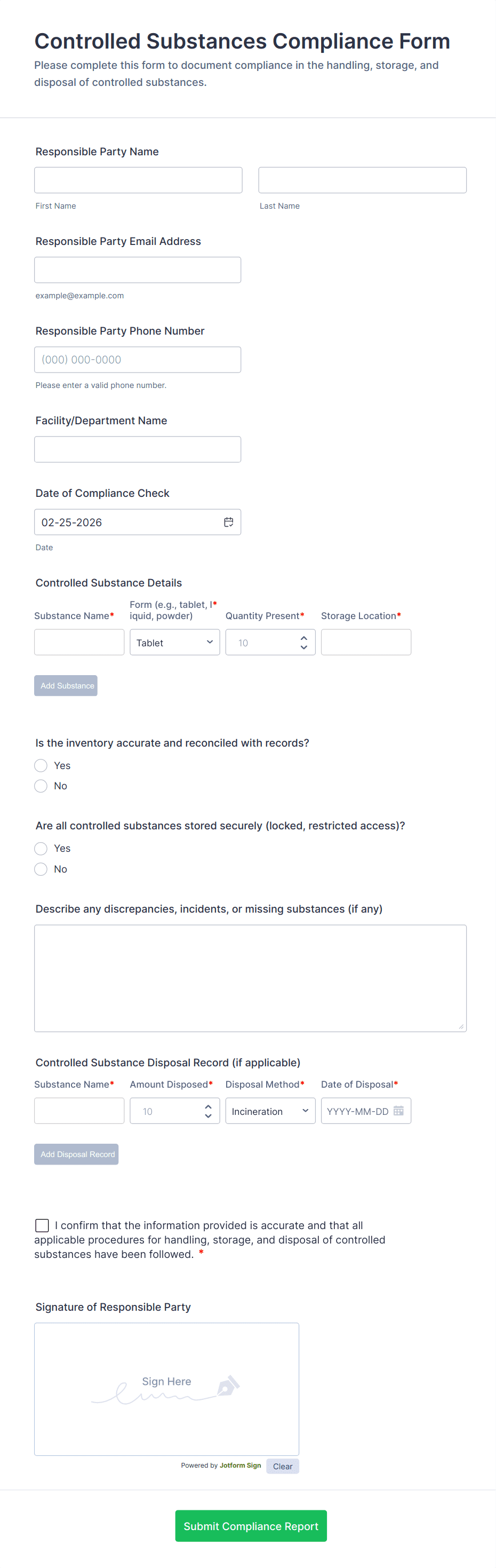 The form templates here are for informational purposes only. Jotform is not providing legal, financial, or other advice, or implying that the forms are legally valid in all or any jurisdictions. Before using any such form, consult an attorney and/or other applicable professionals to make sure that the form meets your needs, legally and otherwise.
