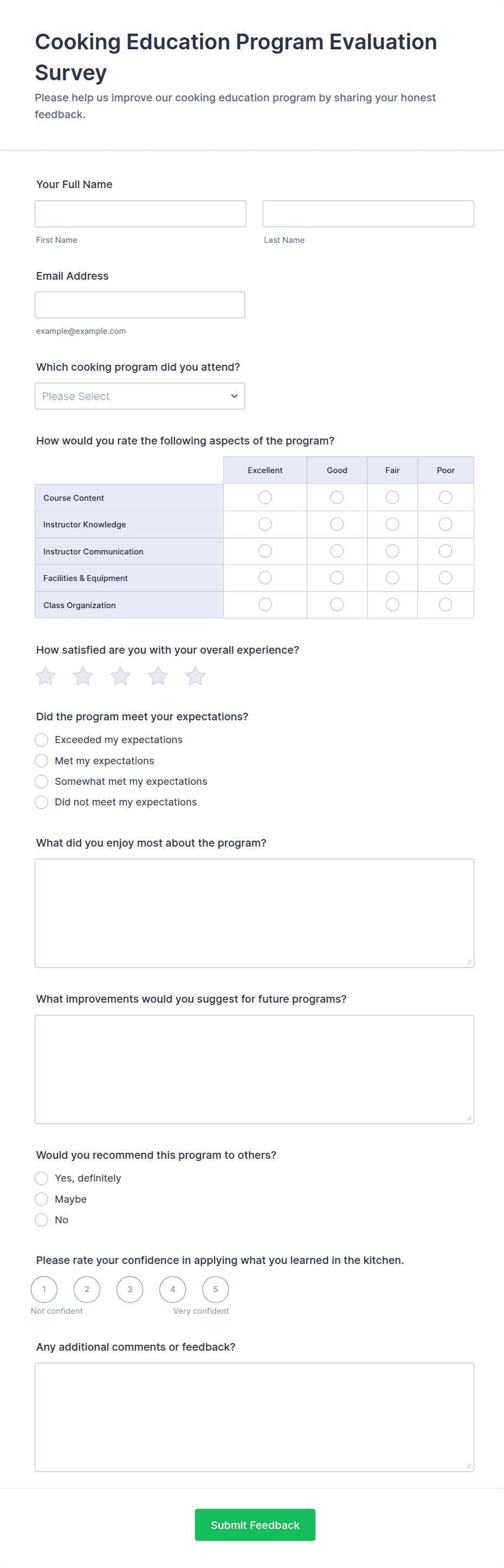 • Short and long text fields for open-ended feedback