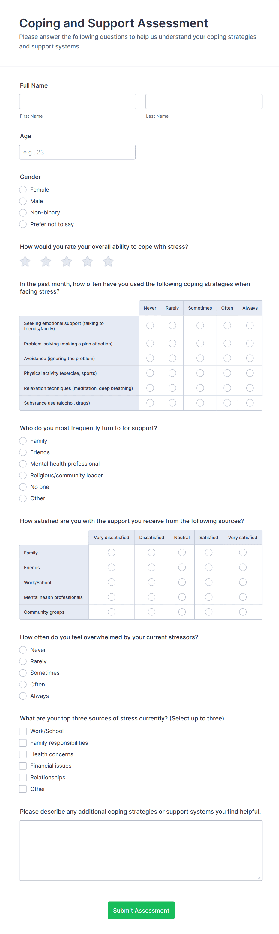 Conduct mental health assessments with this free survey template for businesses, schools, and more. Easy to customize and fill from any device. No coding.