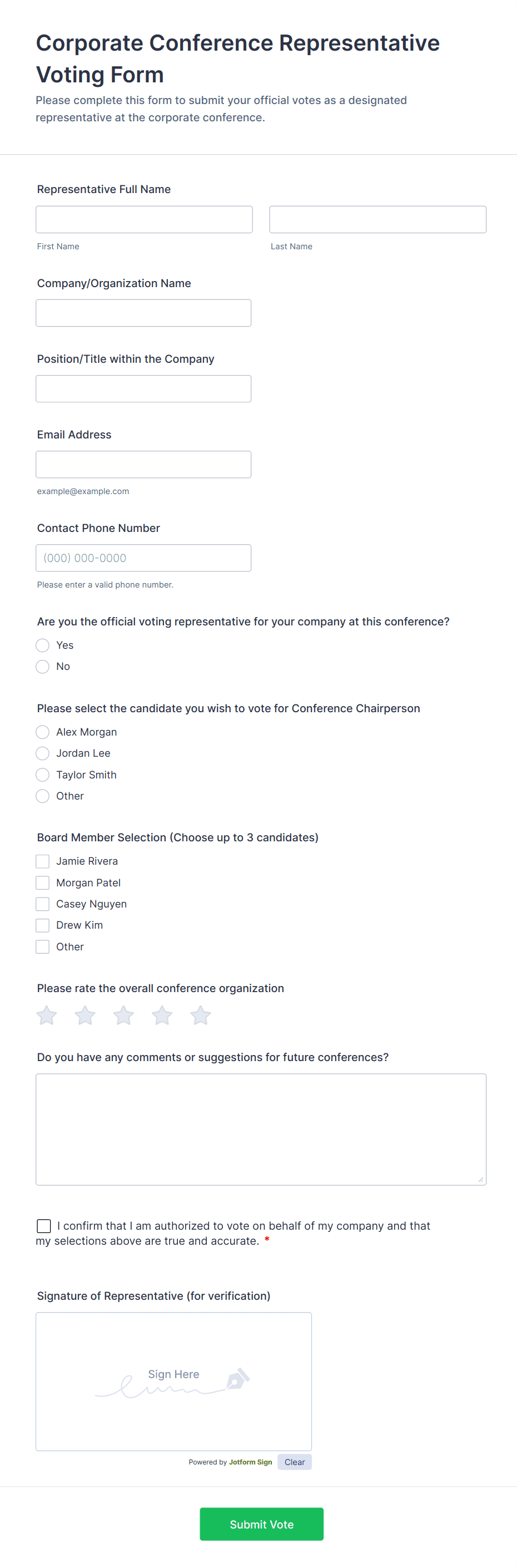 Voting forms are used by schools, businesses, clubs, nonprofits, event organizers, and any group needing to make collective decisions or gather opinions.
