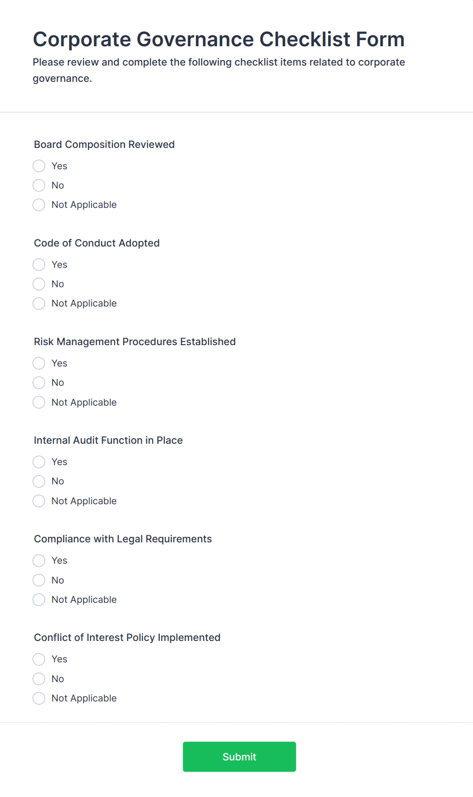 Checklist forms usually contain a list of tasks or items, checkboxes for completion, and may include fields for names, dates, comments, signatures, or supporting documentation.