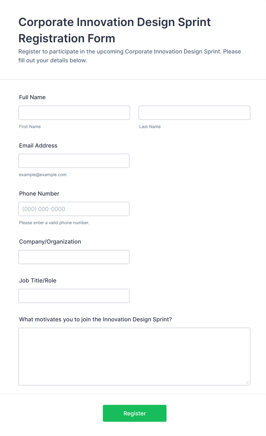 Workshop Registration Form Templates are specialized online forms designed to streamline the process of enrolling participants in workshops, seminars, training sessions, and educational events. These templates help organizers efficiently collect essential attendee information such as names, contact details, session preferences, payment details, and special requirements. Whether you’re hosting a hands-on art class, a professional development seminar, or a multi-day technical workshop, these forms can be tailored to fit the unique needs of your event. Use cases range from small community workshops to large-scale industry conferences, making them versatile tools for educators, trainers, event planners, and organizations of all sizes.