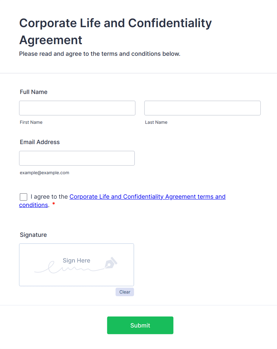 This Employment Contract Form is designed for the employees to sign and agree to the contract and presented legal terms. This employment contract form template asks the employees name, email, date and time and the employees signature. The employment contract is presented nicely using a section collapse. Get a copy of this sample employment contract form now so you can make further edits in the form builder and replace the contract with yours.