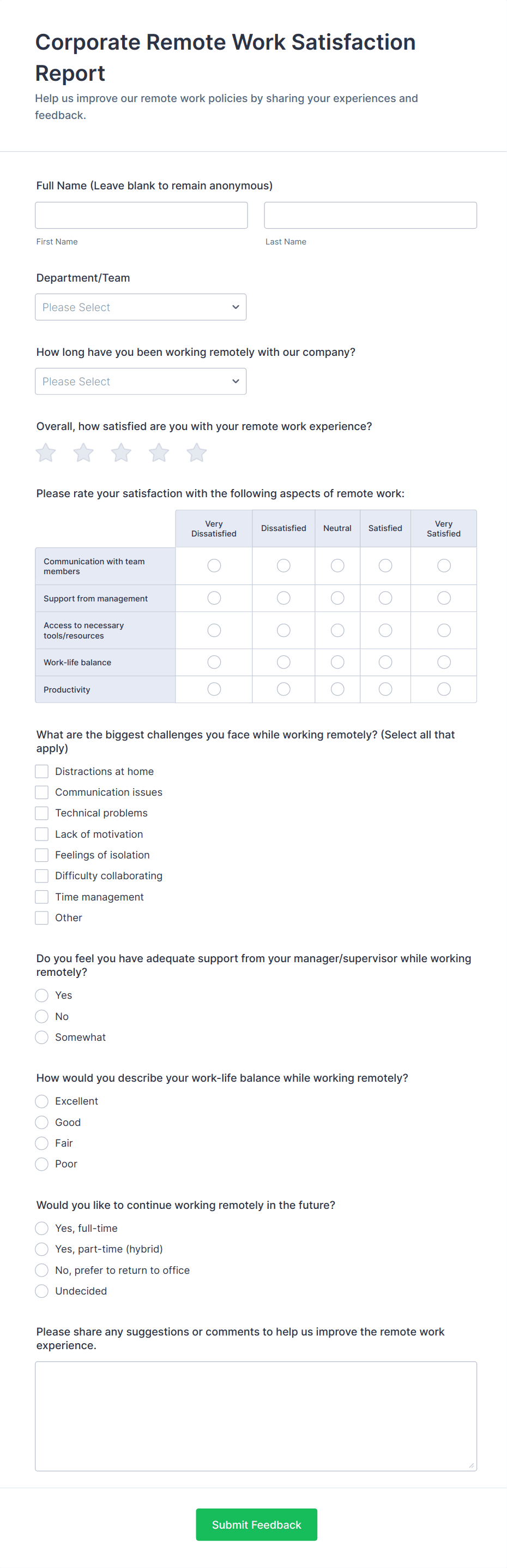 • Embed the form on your HR portal or remote work resource page for easy access.
