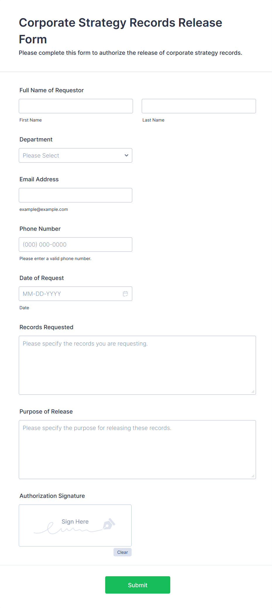 An authorization form is a document used to obtain formal consent or permission from an individual or organization to perform a specific action, such as releasing information, processing payments, or granting access.