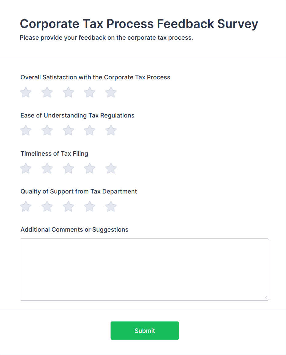 A company survey form creates a feedback survey that allows customers or employees share opinions, comments, or suggestions in a survey or questionnaire.