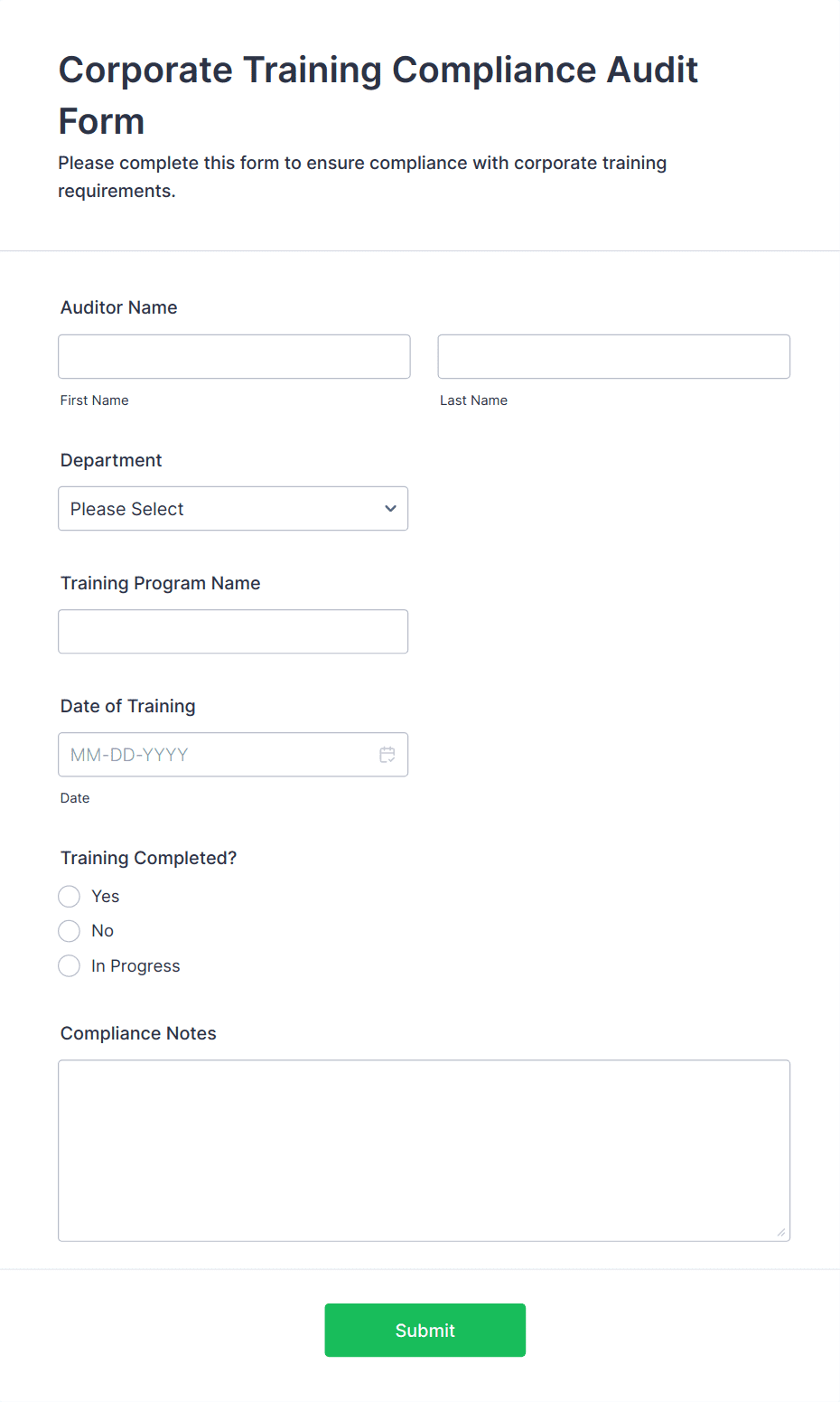3. What information is typically collected in a training form?