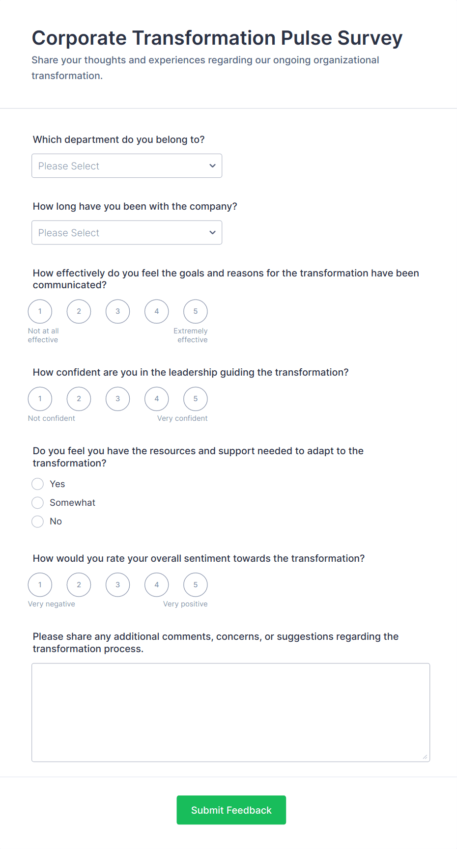- For employee surveys, include questions on job satisfaction, leadership, and work environment.