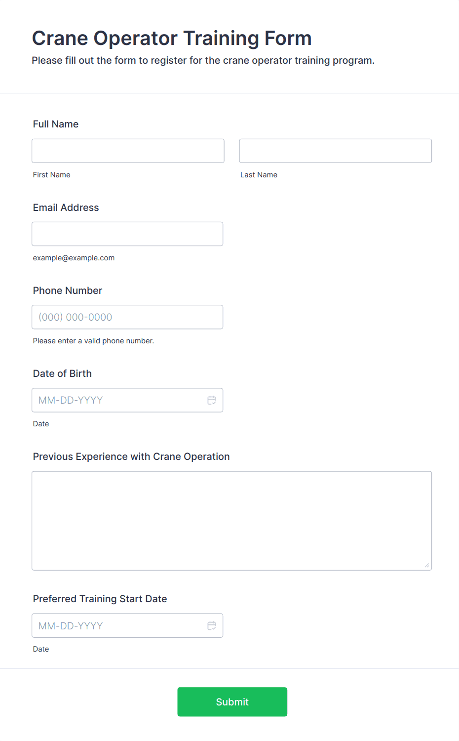 Training forms are specialized digital documents designed to streamline the process of organizing, managing, and evaluating training programs. These forms can be used for a variety of purposes, such as employee onboarding, skills assessments, training feedback, course registrations, pre-training surveys, and post-training evaluations. Organizations of all sizes — from corporate HR departments to educational institutions and training consultants — rely on training forms to collect essential information, track participant progress, and ensure that learning objectives are met efficiently.