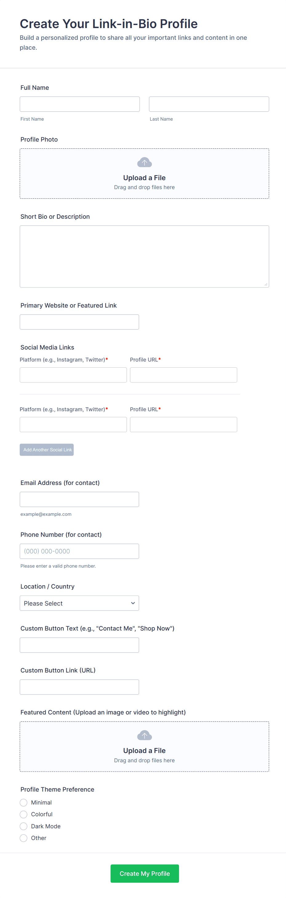 - Newsletter Sign Up: Typically requires only name and email, with optional interest checkboxes.