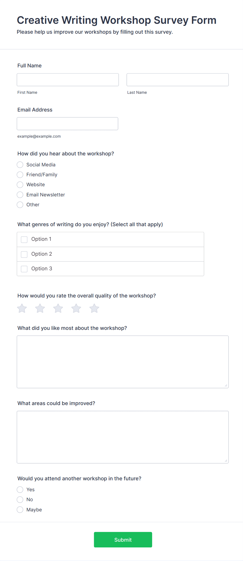 • Optional contact information fields if you wish to follow up with respondents