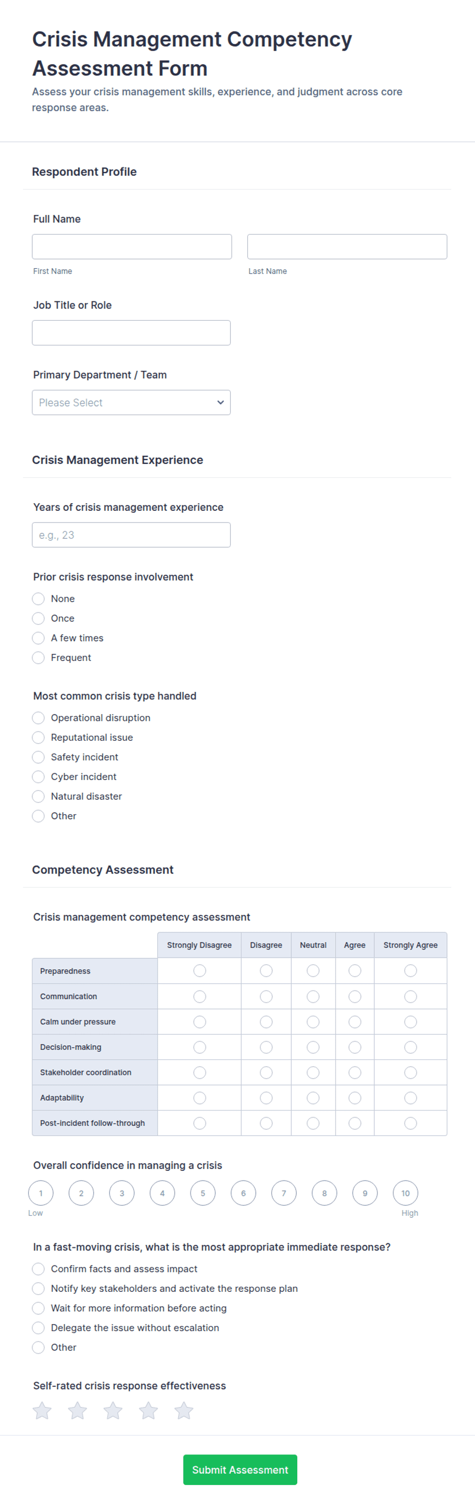 By following these steps, you can create a tailored assessment form that meets your specific needs, streamlines data collection, and provides actionable insights for your organization or project.