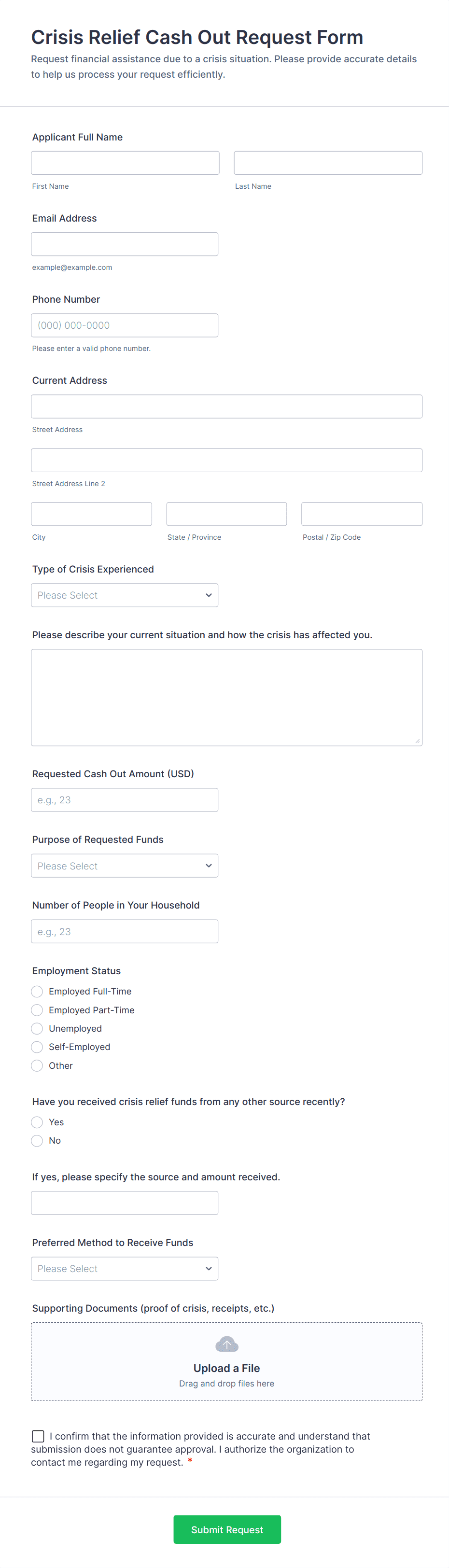 Request forms are essential tools for gathering and organizing information when someone needs to ask for something — whether it’s a service, resource, approval, or support. These forms streamline the process of submitting and managing requests in a wide range of scenarios, such as equipment requests, maintenance requests, time-off requests, IT support, purchase orders, facility bookings, and more. By providing a standardized way to collect all necessary details, request forms help organizations ensure that every request is clear, trackable, and actionable, reducing miscommunication and delays.