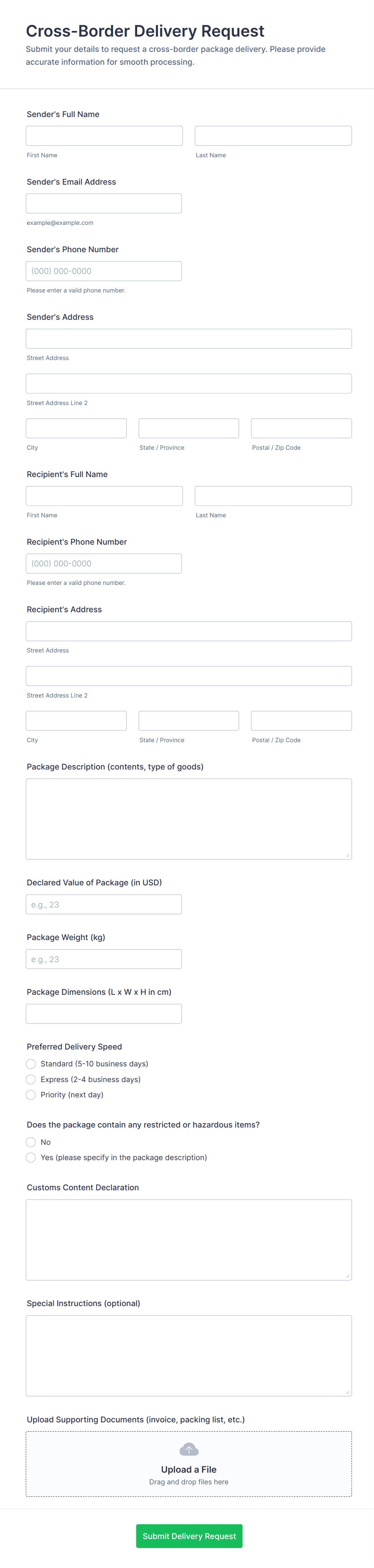 The Parcel Delivery Form allows businesses and individuals to collect essential shipping information, streamlining the delivery process and ensuring efficient data collection.