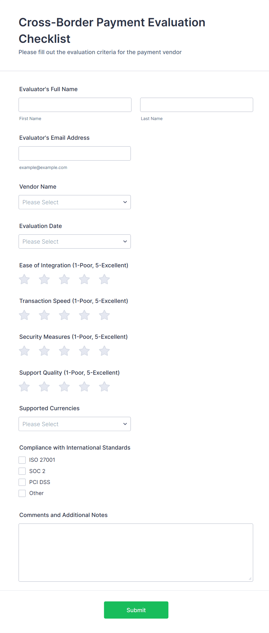 • For more complex checklists, add dropdowns, file upload fields (for attaching evidence or reports), or signature fields (for verification).