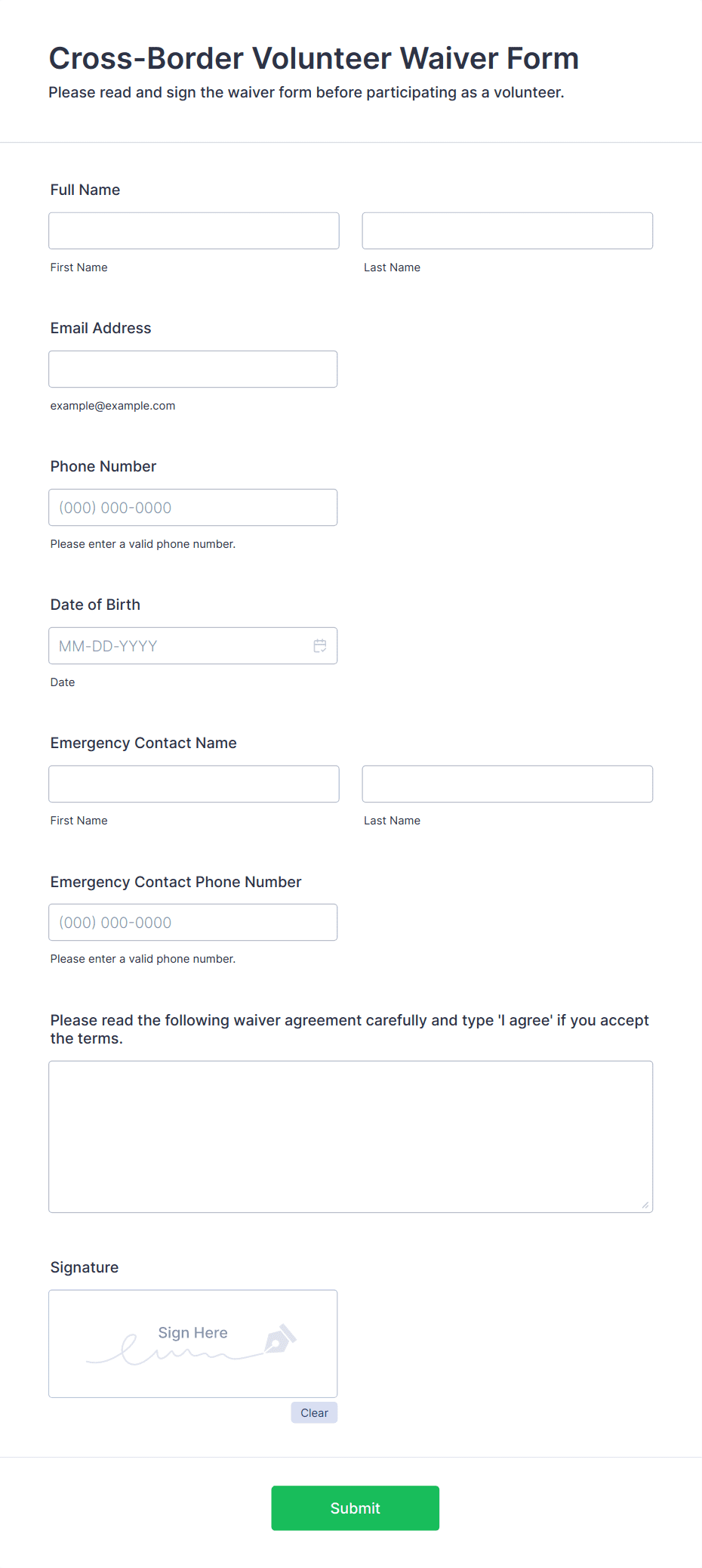 - Content and fields vary by use case: A gym waiver may require health disclosures, while a school field trip waiver may need emergency contact information.
