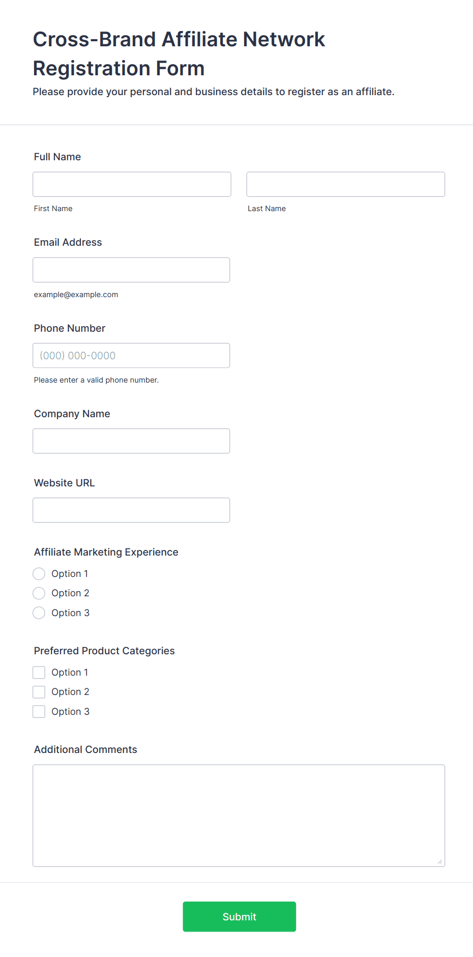 • For event or course registrations, include fields for session selection, preferences, or special requirements.