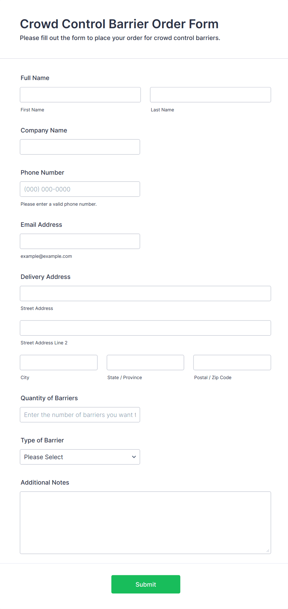 The form templates here are for informational purposes only. Jotform is not providing legal, financial, or other advice, or implying that the forms are legally valid in all or any jurisdictions. Before using any such form, consult an attorney and/or other applicable professionals to make sure that the form meets your needs, legally and otherwise.