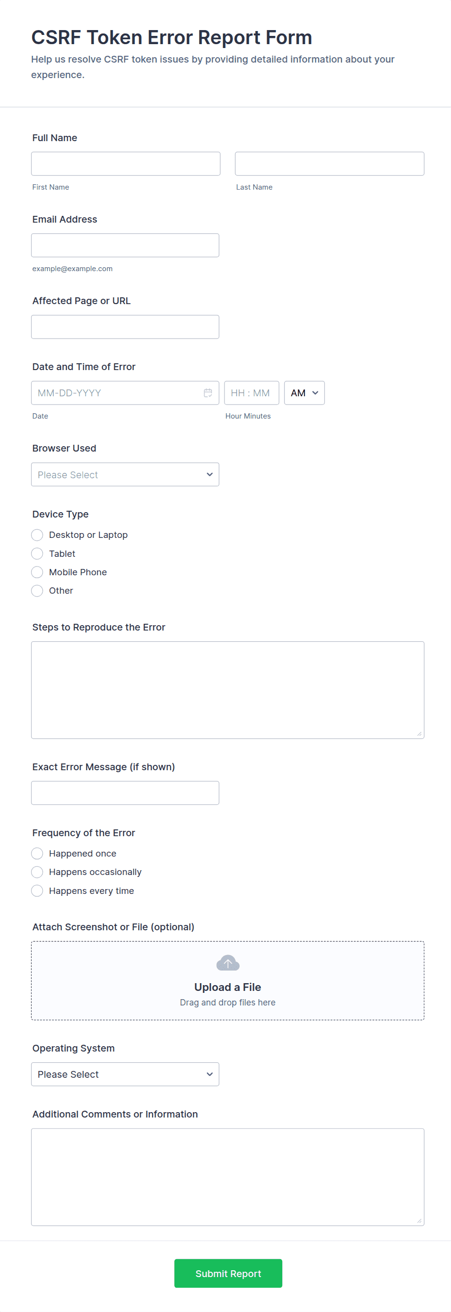 3. What information should be included in an incident report form?