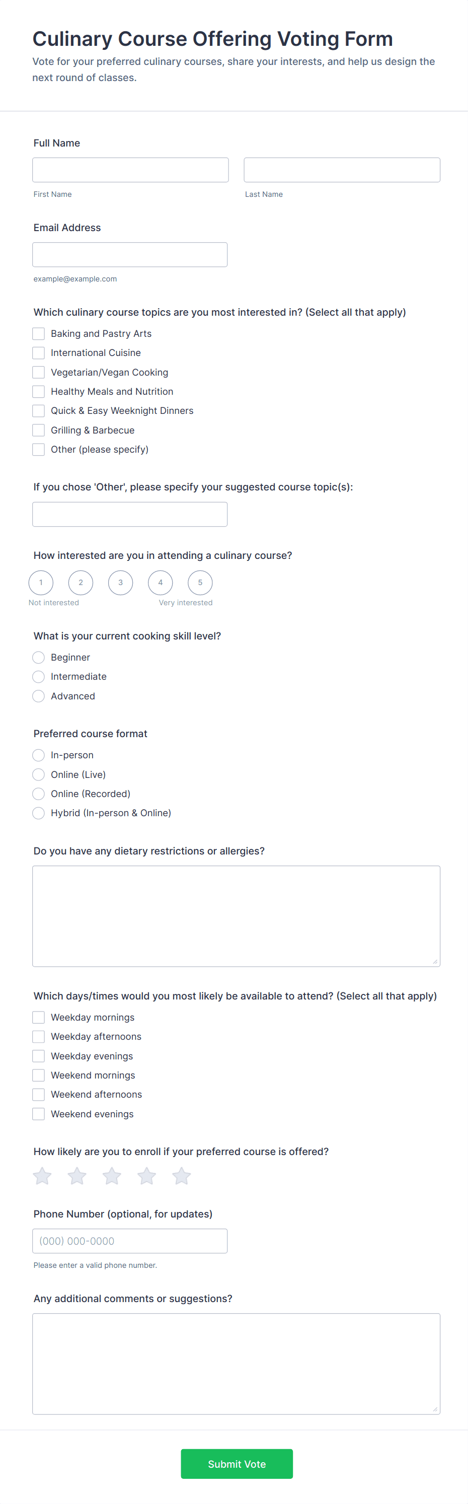 By following these steps, you can create a tailored voting form that meets your specific needs, ensures data integrity, and provides a seamless experience for all participants.