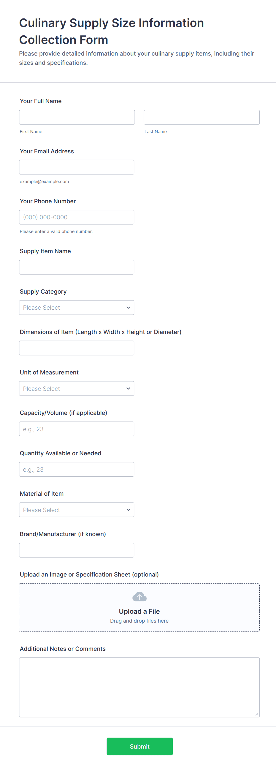 • Event Supplies: May ask for event dates, delivery locations, and special instructions.
