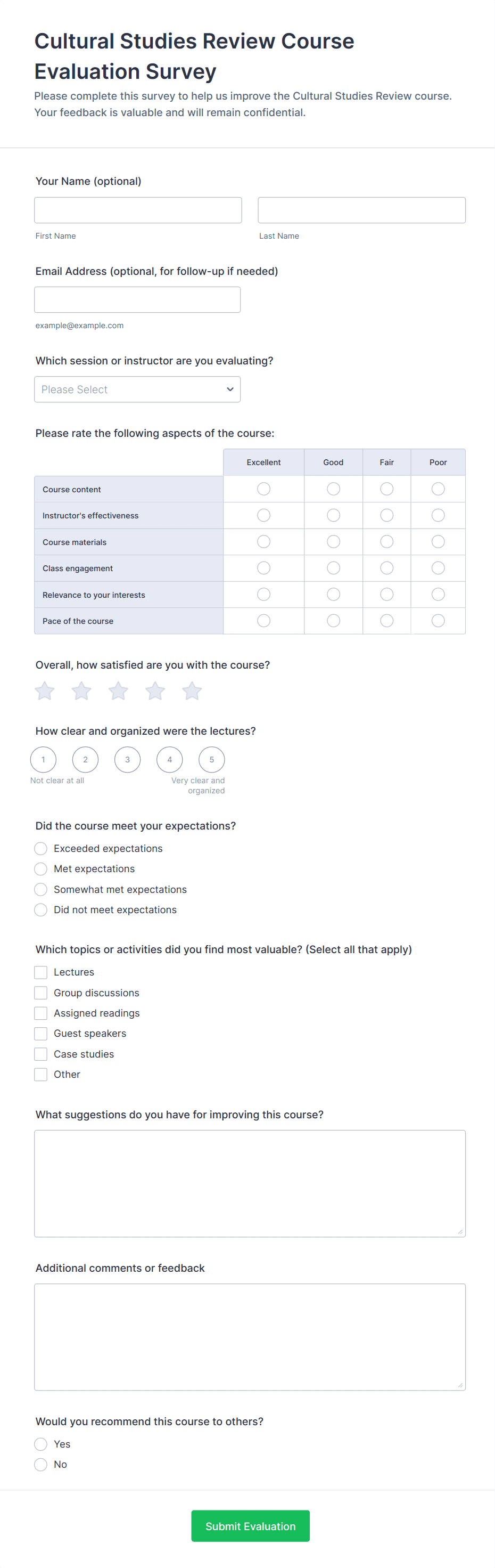 Course Evaluation Form