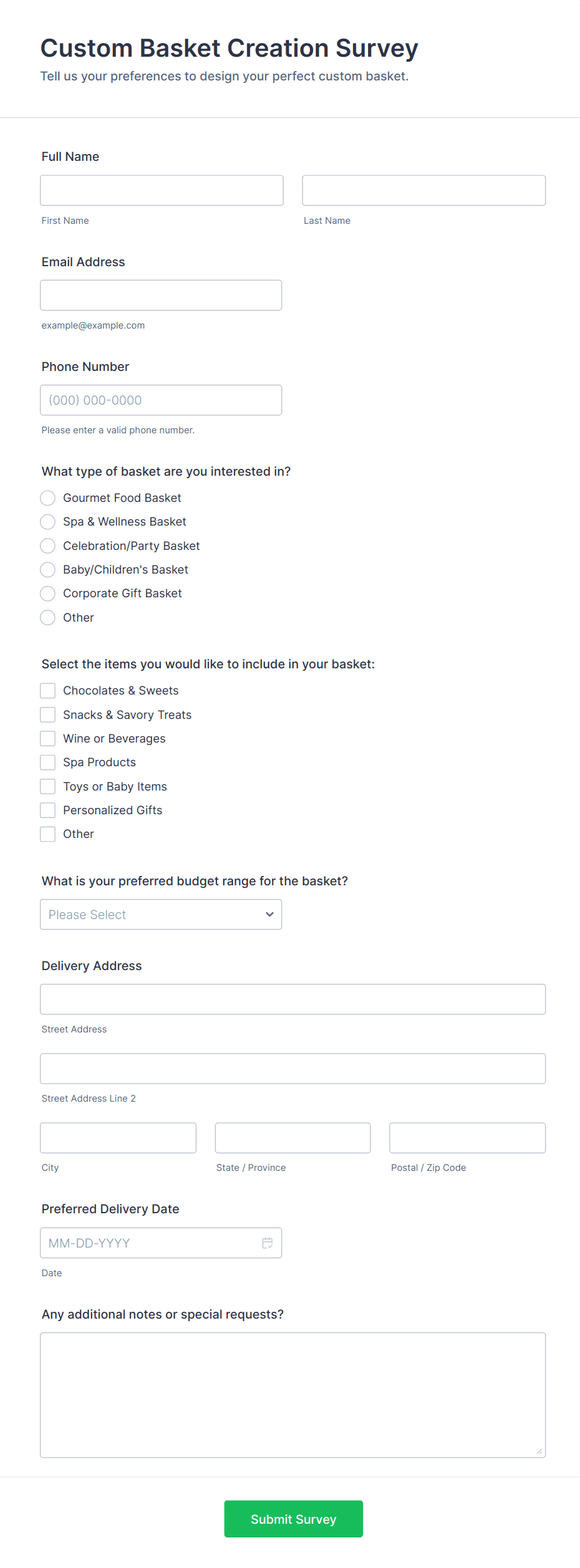 Product order forms are essential tools for businesses and organizations that need to collect orders for physical or digital products online. These forms streamline the process of gathering customer information, product selections, quantities, payment details, and shipping addresses, making it easy to manage sales and inventory. Product order forms can be used in a variety of scenarios, such as e-commerce websites, small businesses selling handmade goods, restaurants offering online ordering, event merchandise sales, or even non-profits collecting orders for fundraising items. Their flexibility allows them to be tailored for single-product checkouts, multi-item catalogs, pre-orders, or subscription-based offerings.