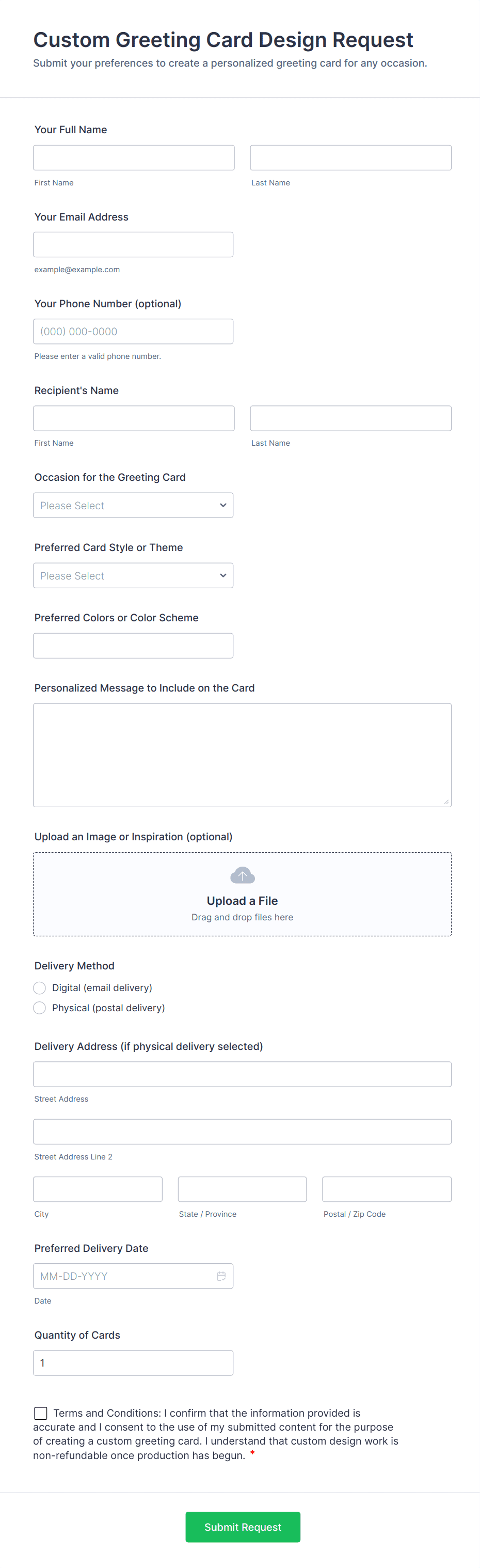• Use conditional logic to show or hide fields based on the request type or user responses.