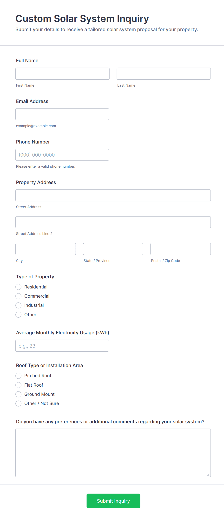 3. What information should be included in an inquiry form?