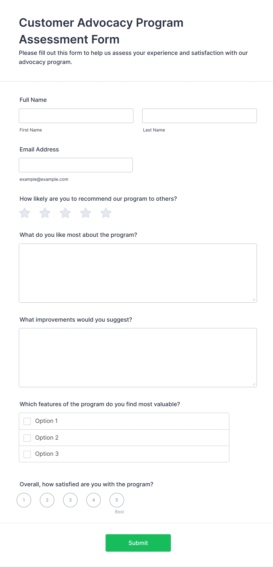 In summary, Customer Satisfaction Evaluation Forms are versatile tools that can be tailored to fit a wide range of feedback scenarios, helping organizations of all types to better understand and serve their audiences.