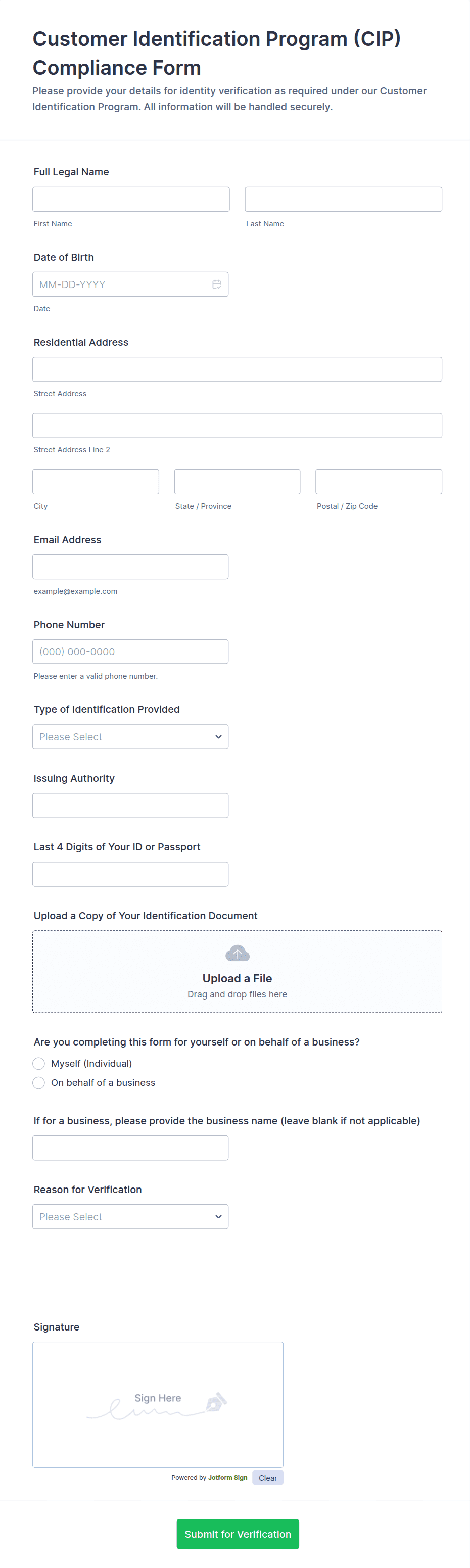 - Use dropdowns or multiple-choice fields to specify the type of verification (e.g., identity, employment, address).