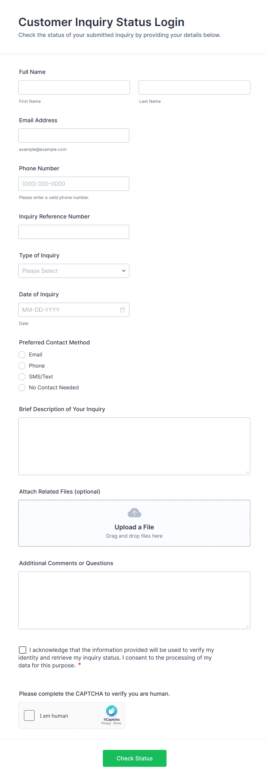 The form templates here are for informational purposes only. Jotform is not providing legal, financial, or other advice, or implying that the forms are legally valid in all or any jurisdictions. Before using any such form, consult an attorney and/or other applicable professionals to make sure that the form meets your needs, legally and otherwise.