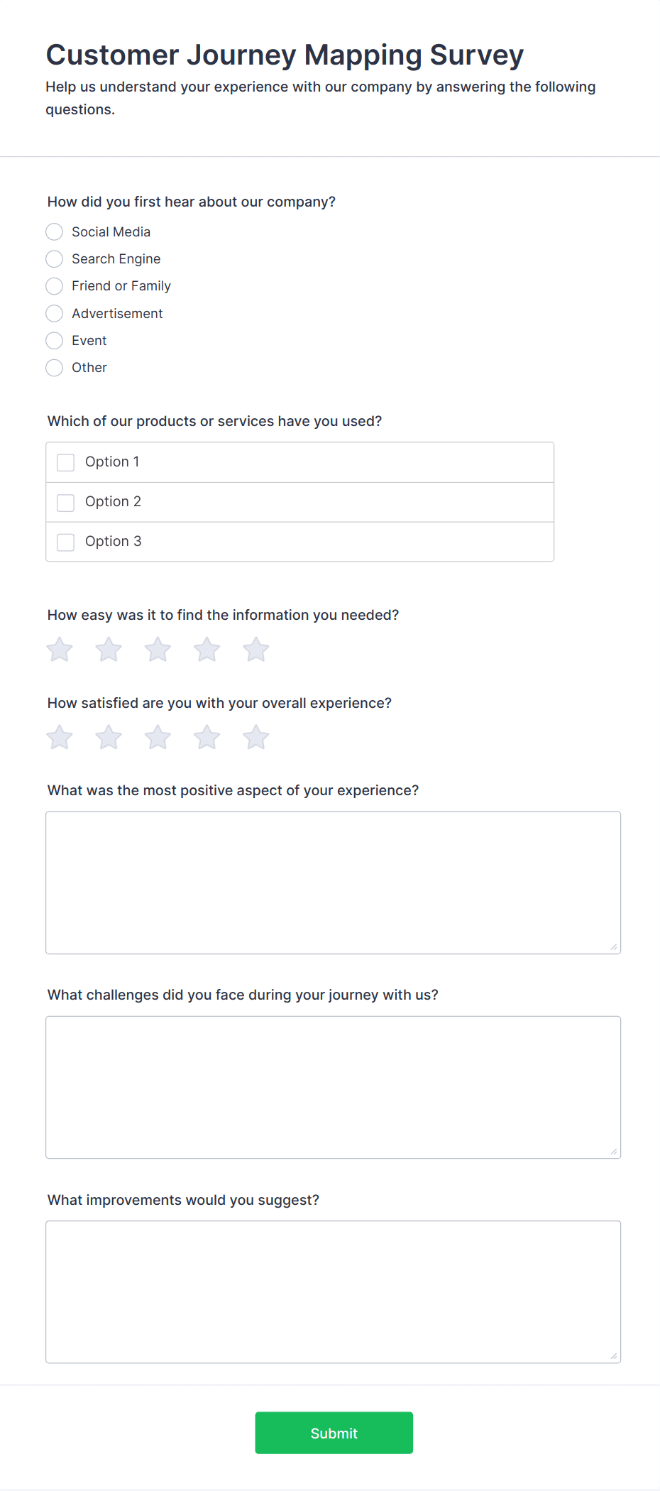 Get to know your customers with a free online Customer Satisfaction Survey. Easy to customize, share, and embed. Analyze results to improve your business.