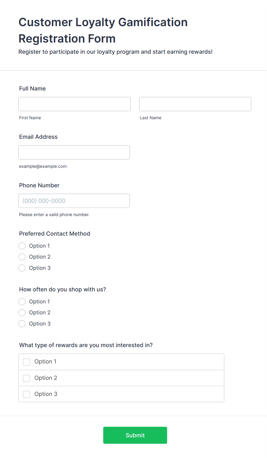 - Loyalty program enrollment: Typically requests contact details and consent for marketing communications.