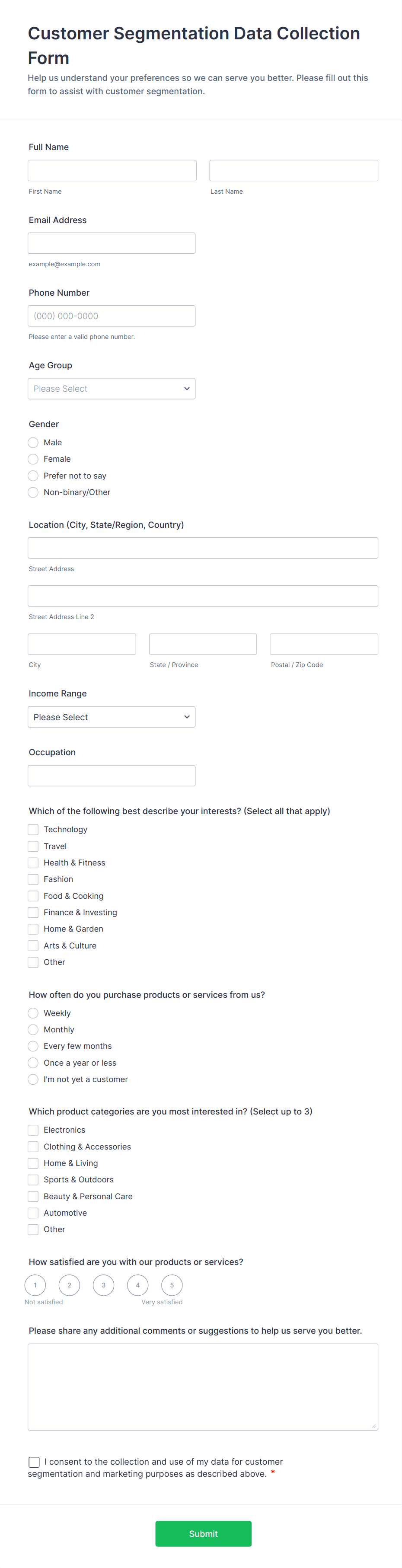 • Market Research Surveys: Incorporate demographic questions, purchasing behavior, and competitor analysis.