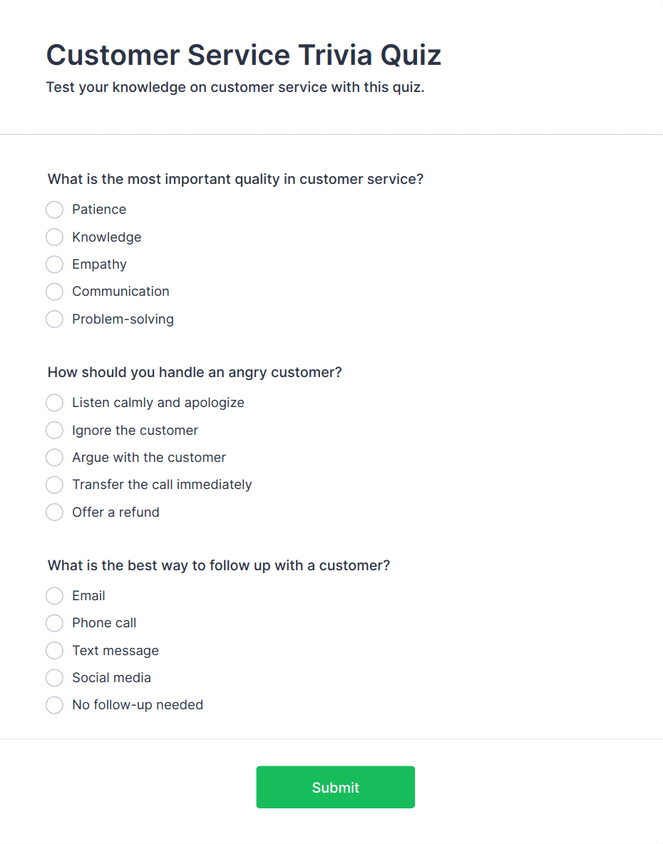 Now it is easy to learn how your customers are satisfied with your service thanks to this Customer Service Satisfaction Survey. No code required!