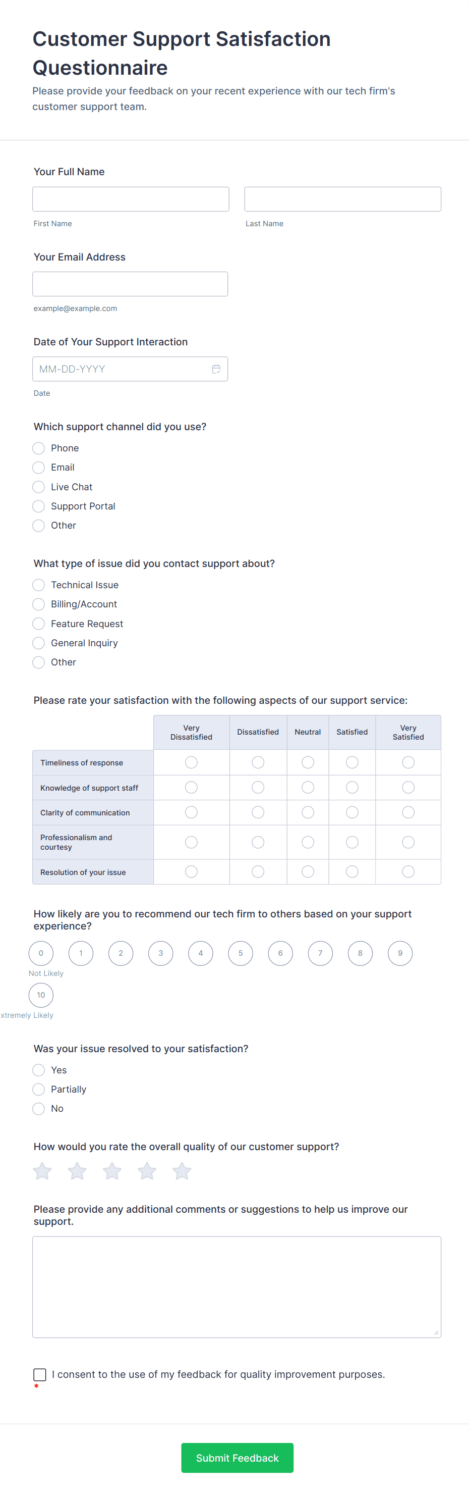 Customer Feedback Form Template