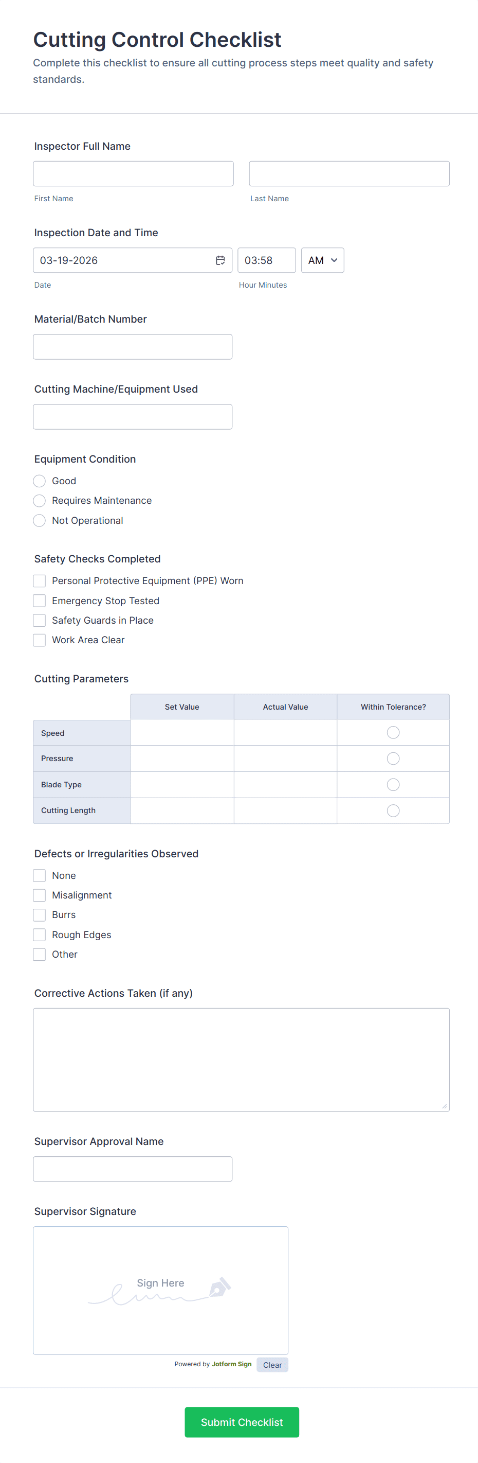 Quality Control Inspection Form