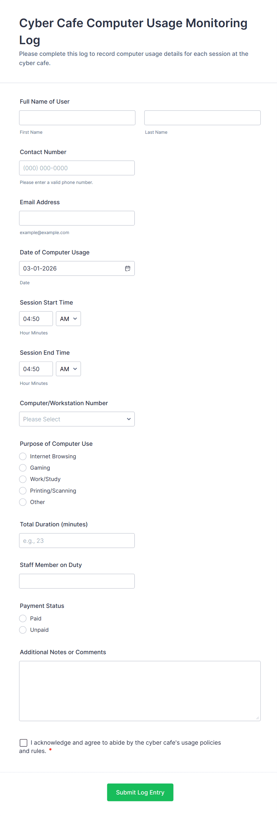 - Signature fields for accountability.