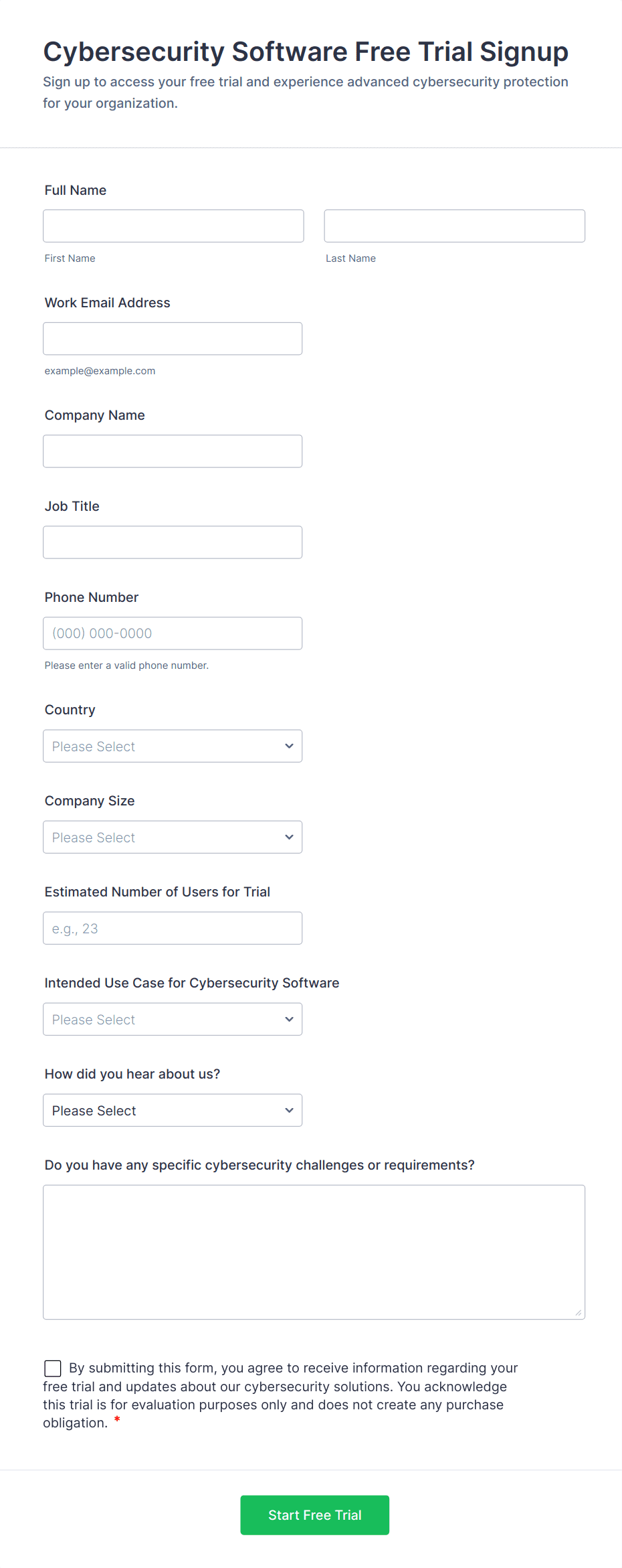 - Newsletter Sign Up: Typically requires only name and email, with optional interest checkboxes.