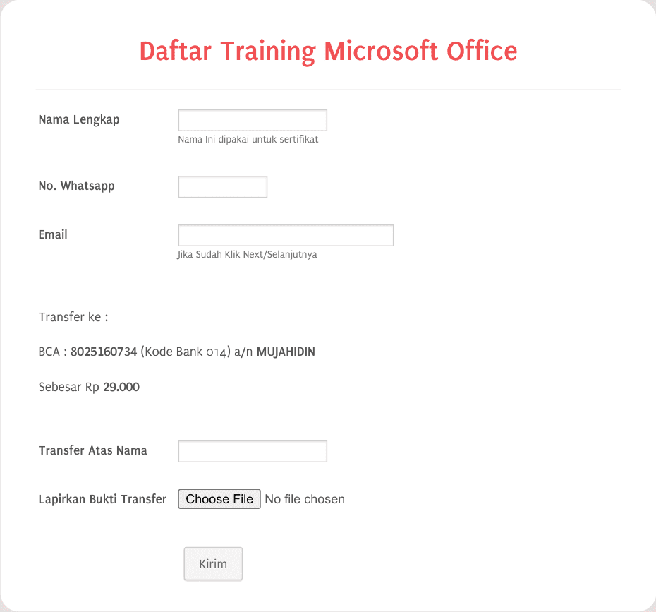 EMail Opt In Form