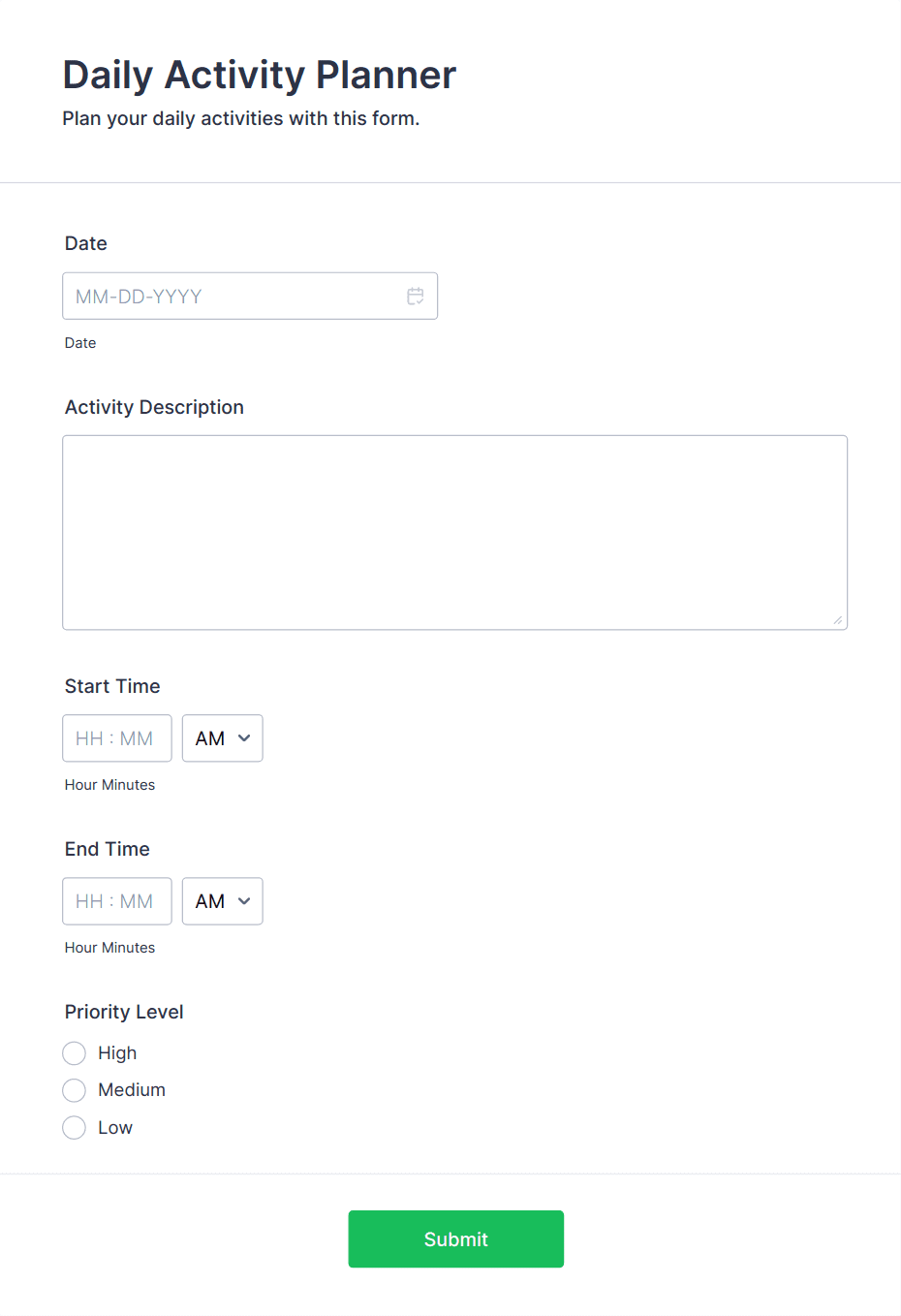 A business form template is a pre-designed digital form used to collect, process, and manage information for various business operations, such as client intake, employee onboarding, or order processing.