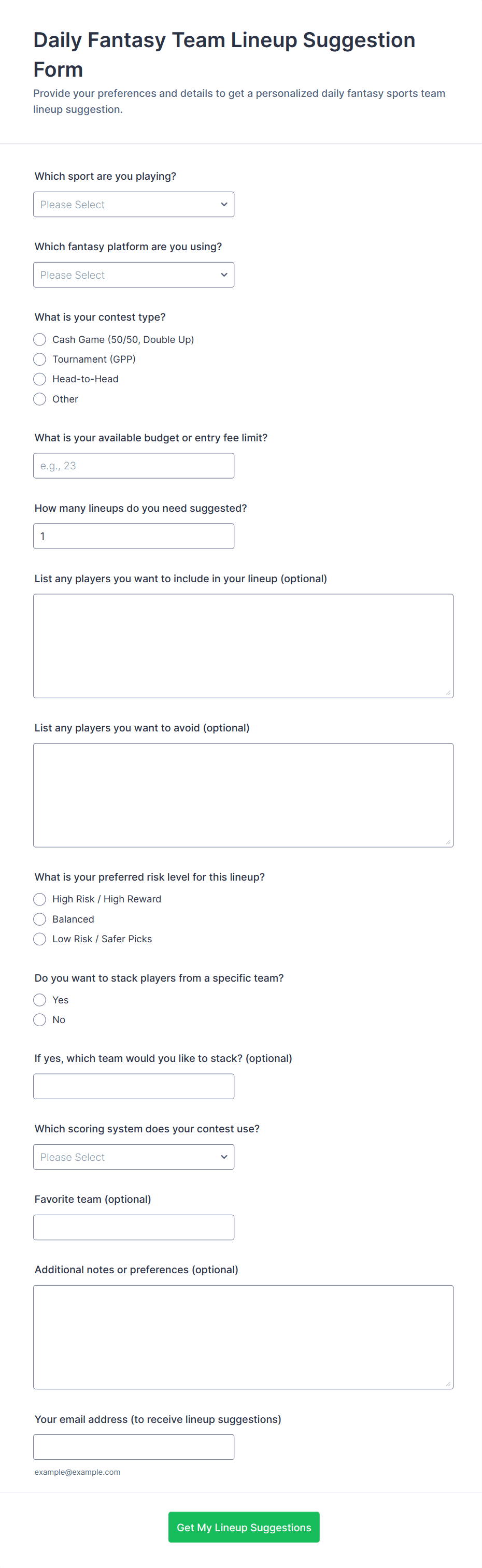 3. What information is typically collected in a gaming form?