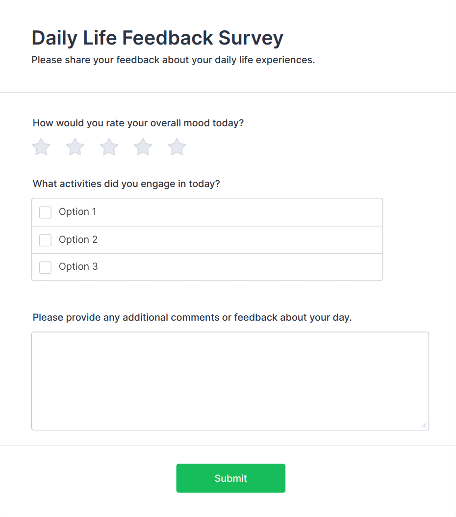 • Product feedback forms may include questions about usability, features, and likelihood to recommend.