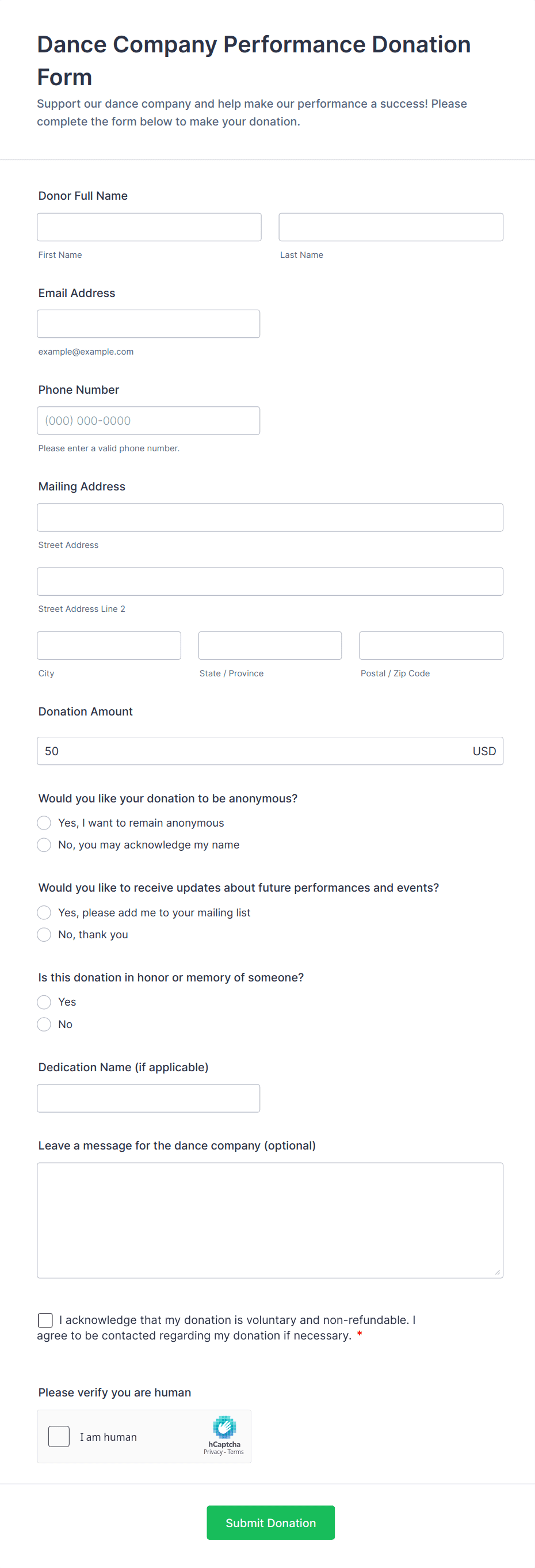 • Memorial or Tribute Donation Forms: Allow donors to dedicate their gift in honor or memory of someone.