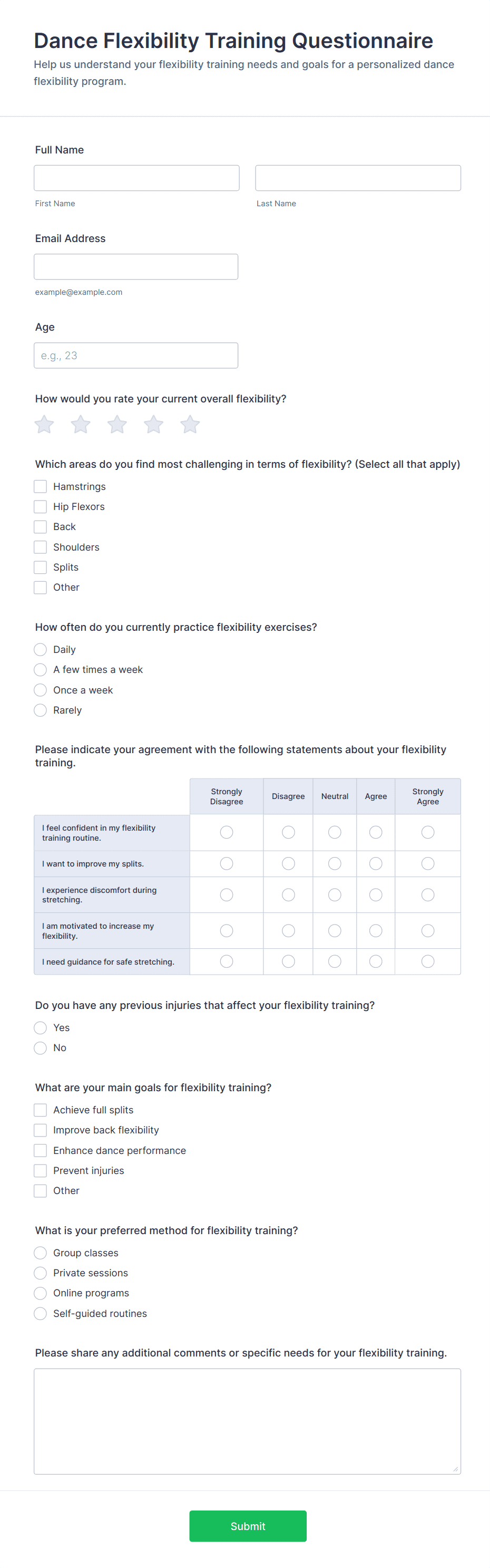 • Content and fields differ based on the objective: e.g., a health screening questionnaire may include medical history and symptom checklists, while a customer feedback form focuses on satisfaction ratings and open-ended comments.