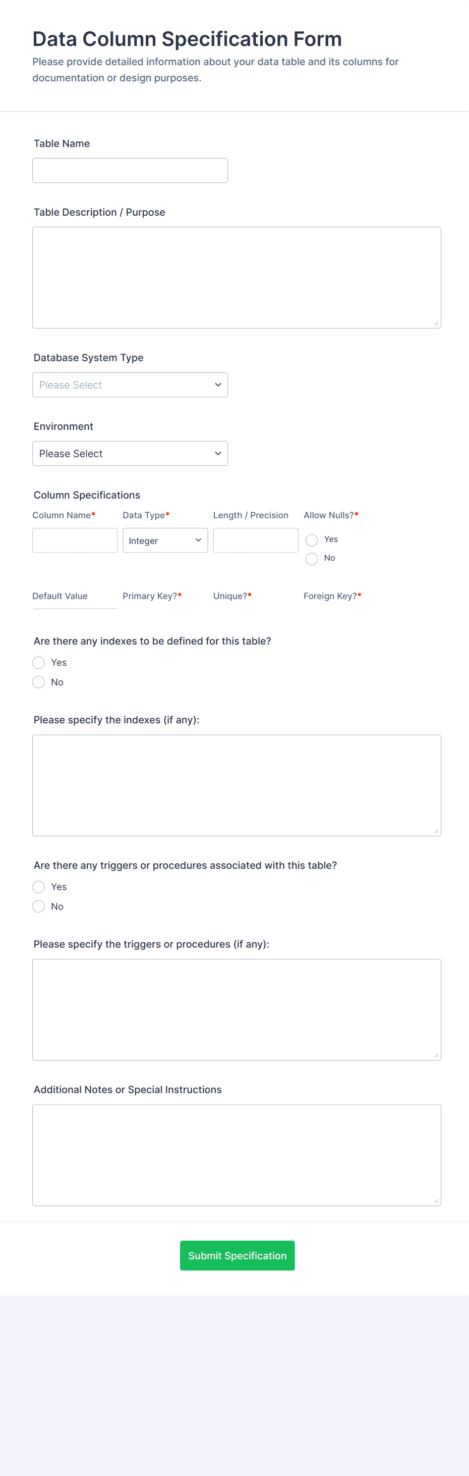 A server request form is a document that describes the server requirements and operating environment to be used for a software or hardware product. Easily embed this form either on your website or share it via URL. No coding.