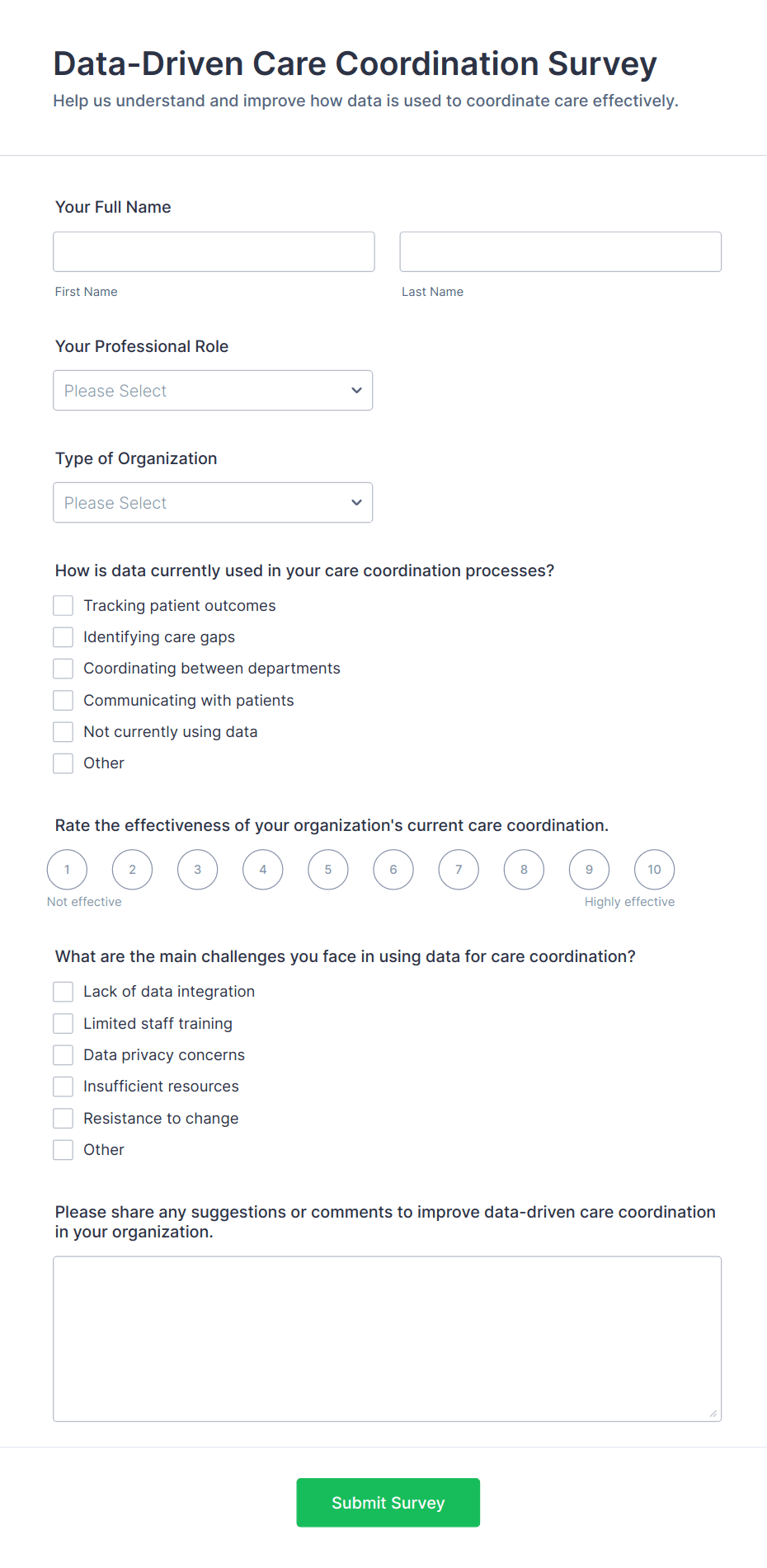 By following these steps, you can create a healthcare survey that is both user-friendly and compliant with industry standards, helping you gather actionable insights and improve healthcare outcomes.