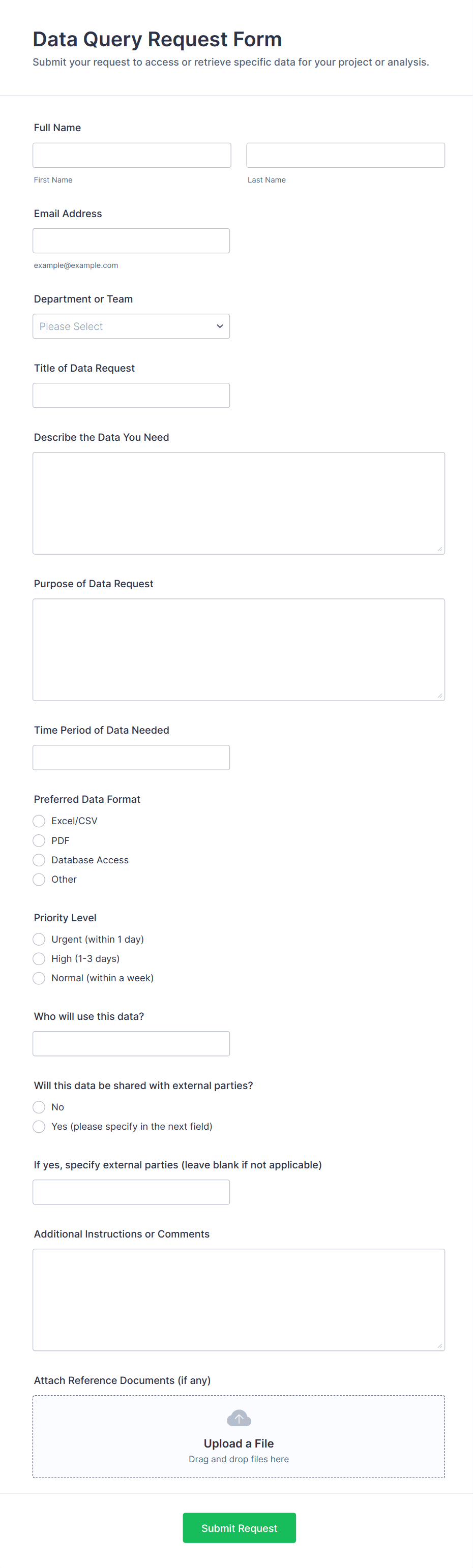 Data Request Form Template helps collect updated information from clients, partners, or contractors to keep records accurate and organized.