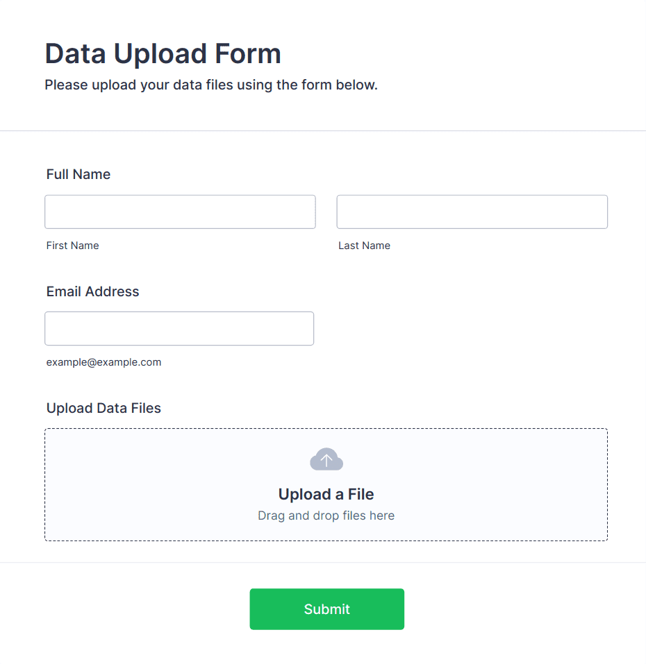 File Upload Forms serve a broad spectrum of industries and purposes, offering tailored solutions for various file collection needs. Here’s how they address different scenarios: